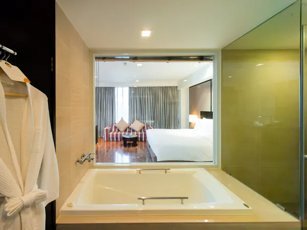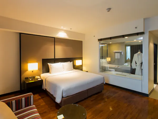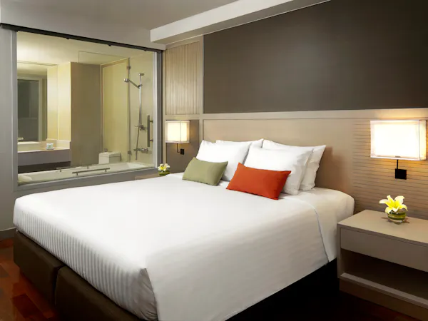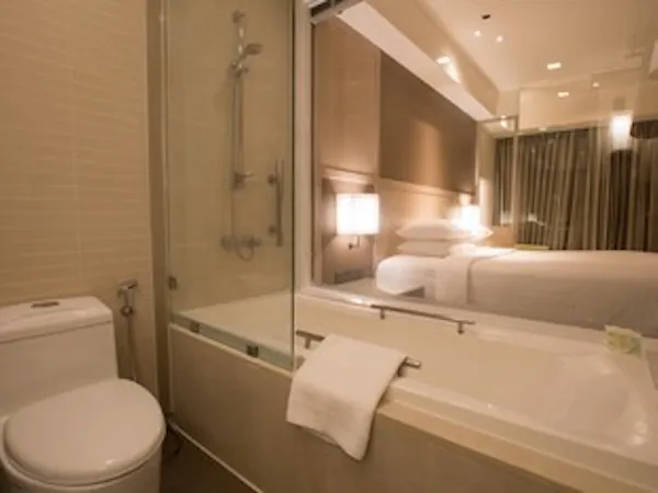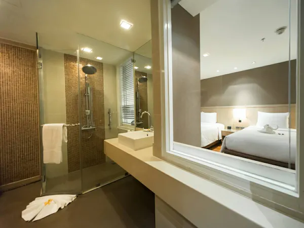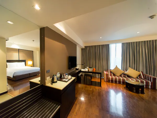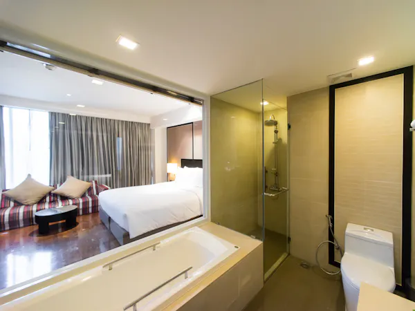 Studio Suite (52 sqm.) offer a spacious and comfortable separate living room that is perfect for relaxing. The Studio rooms feature comfortable contemporary sofas and furniture from which to enjoy flat-panel television. The spacious bathroom contains a separate shower, deep soaking tub, and a full supply of deluxe bathing products and plush Signature towels and bathrobes.