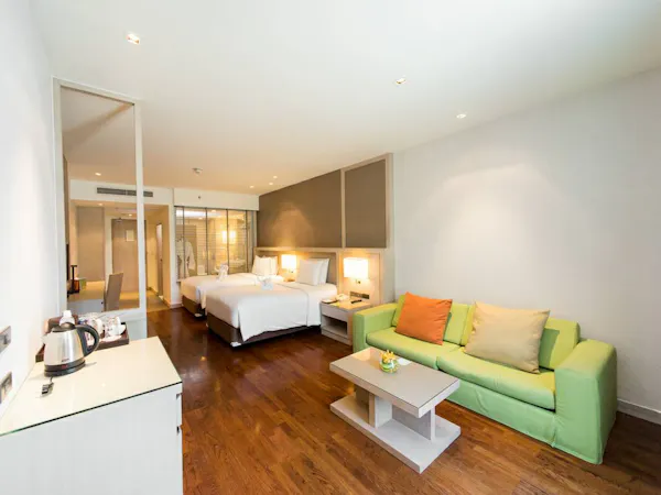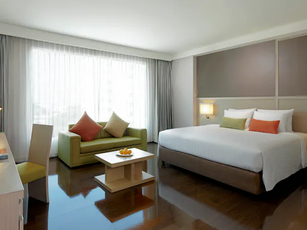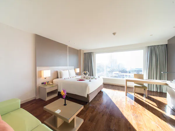 Superior City View (32sqm.) offer wonderful views over the city of Pattaya. The spacious and comfortable rooms, with a wood-dominated interior, exude an impression of warmth and friendliness. Rooms are appointed in a décor that accents the most peaceful elements of nature and is fully equipped with satellite television, Wi-fi Internet access, and an executive writing desk